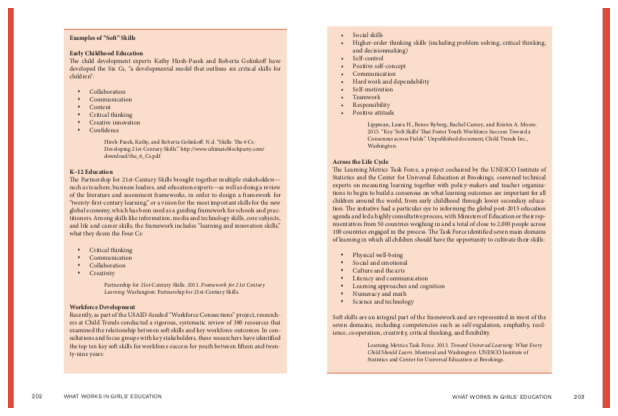 In Chapter 5, the authors cite the importance of proper curriculum which accommodates the gap between what is expect of students and what students can actually do, while also developing noncognitive skills like communication, teamwork and leadership. Chapter 7 of the EFA MR 2013/14 addresses these matters in much more detail.